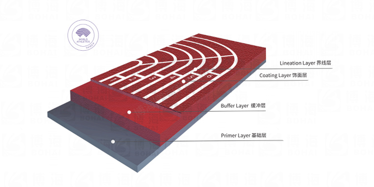 由微發泡閉孔技術的聚氨酯底膠鋪設而成,為世界田徑(國際田聯)認可推薦為各大型國際賽事運動員競賽和訓練專用場地類型,耐高低溫、沖擊吸收。