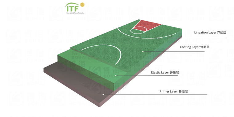 由PU彈性層BH-CS01、加強層和水性面漆耐磨層BH-WB01刮涂組成,該結構具有優越物理性能,滿足人體工學的彈力科技,色彩美觀,施工方便、耐候性能強,防滑性好、容易保養的有點。